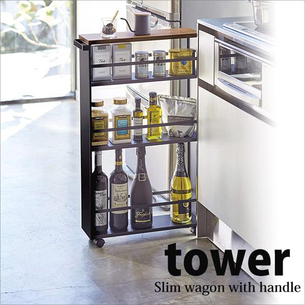 Tower ハンドル付きスリムワゴン キッチンワゴン タワー キッチンラック キャスター付き 隙間 収納 ホワイト ブラック 山崎実業 ミツヨシ 通販 Paypayモール